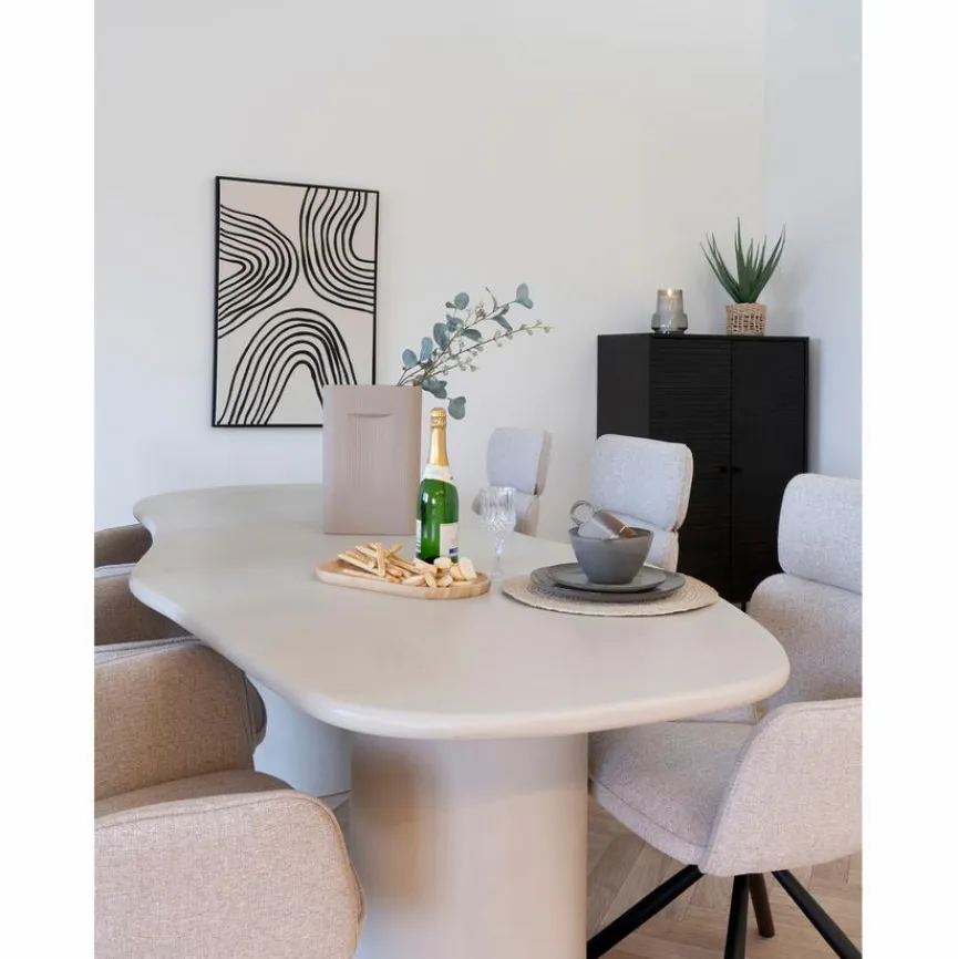 Der Esstisch Maranola 200×96 cm setzt mit seinem außergewöhnlichen Design ausgesprochen stylische Akzente. Vor allem die unkonventionelle Formensprache der Platte prägt den attraktiven Look dieses Esszimmertisches. Auch die säulenartigen Beine und die schicke Zement-Optik machen den Esstisch Maranola 200×96 cm zu einem ästhetischen Highlight für Ihre Wohneinrichtung.