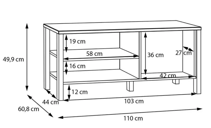 - Mit 2 Türen und 2 offenen Fächern