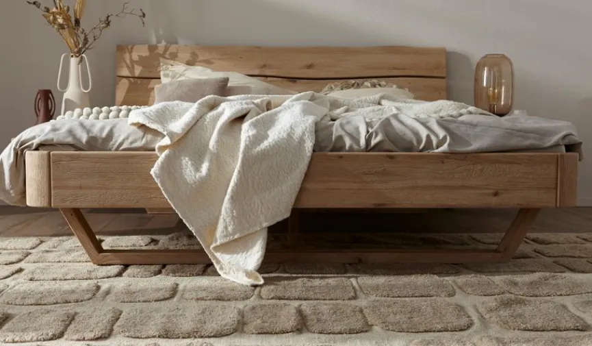 Das Massivholzbett Omaha 180×200 cm aus dem Hause MAISON ist aus natürlich gewachsenem Echtholz gefertigt und strahlt eine starke Persönlichkeit aus. Zu diesem hochwertigen Bettgestell können Sie die weitere Ausstattung wie Lattenrost, Matratze oder Nachttisch separat hinzubestellen, um Ihr ganz persönlich zusammengestelltes Bett zu kreieren. Begeistern kann das Massivholzbett Omaha 180×200 cm zudem durch das kufenförmige Untergestell.