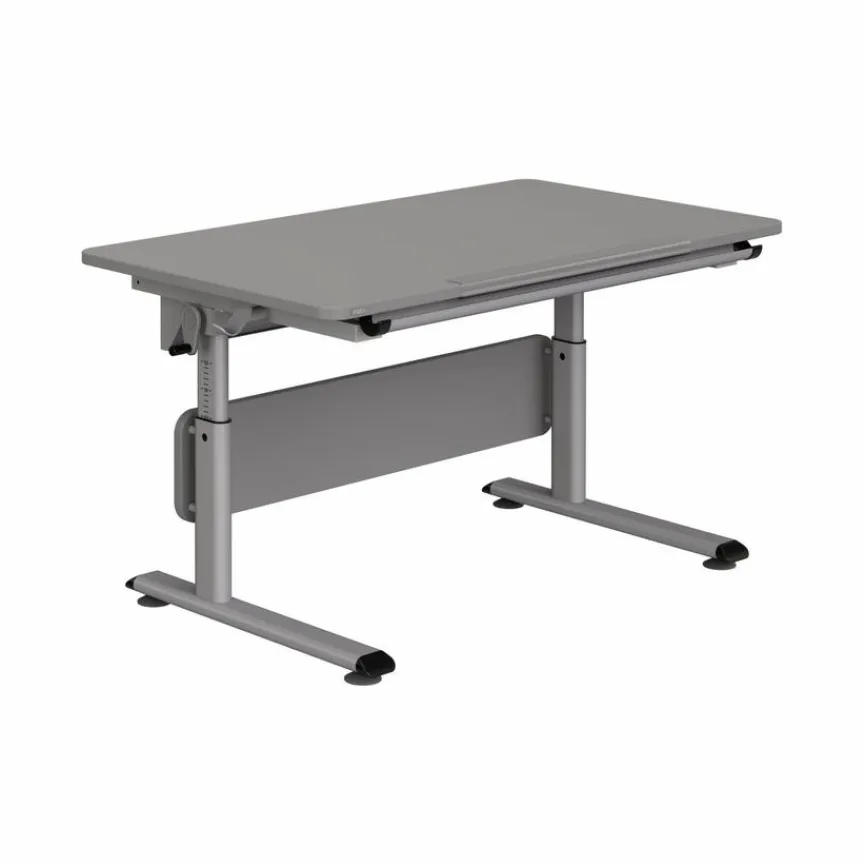 - Aus Spanplatte mit kratzfester Melaminharzfolie in schiefergrau, Gestell, Ablagemulde und Taschenhaken aus Kunstoff in silberfarbig