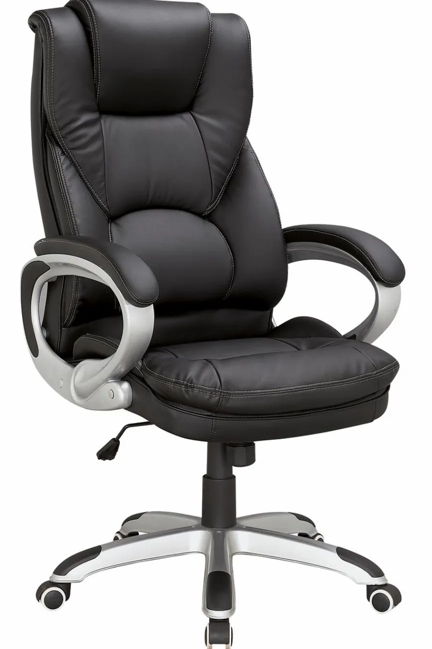 - Sitzfläche aus Schaumstoff mit Bezug Lederoptik in schwarz, Gestell aus Kunstoff in Metalloptik, inkl. Universalrollen