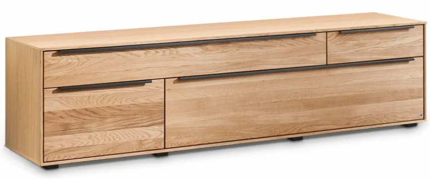 - Korpus aus Holzwerkstoff (Spanplatte) in Echtholz Eiche furniert, Front aus massiver Eiche