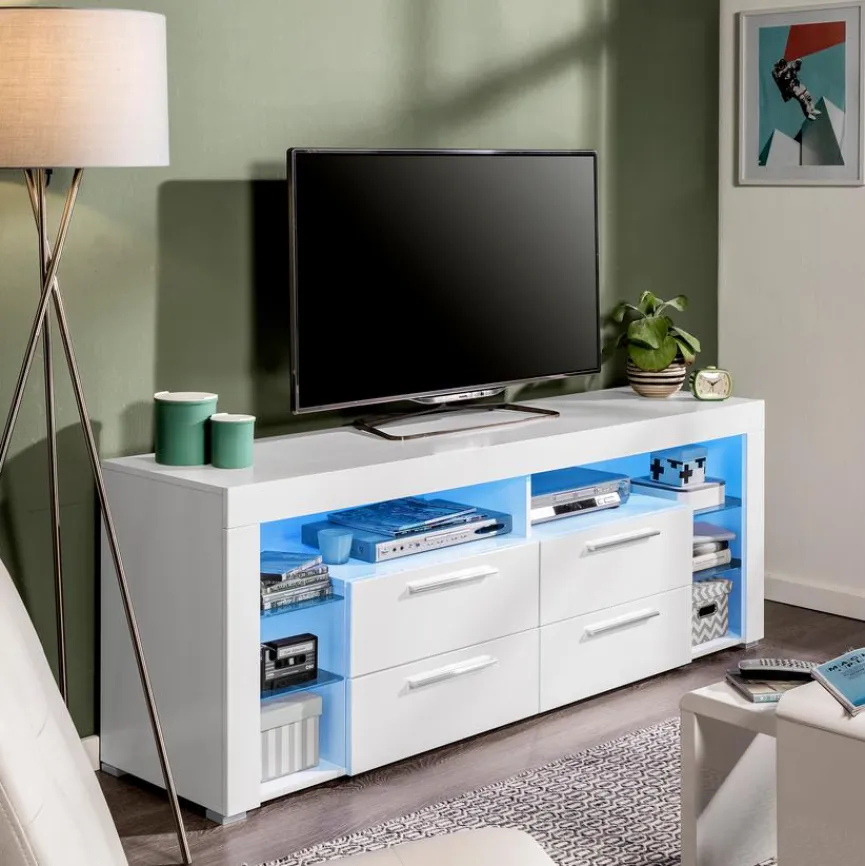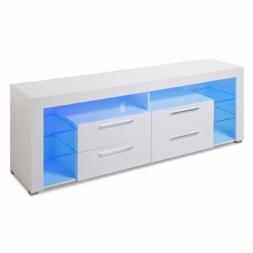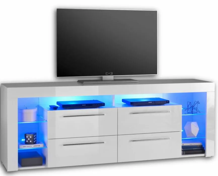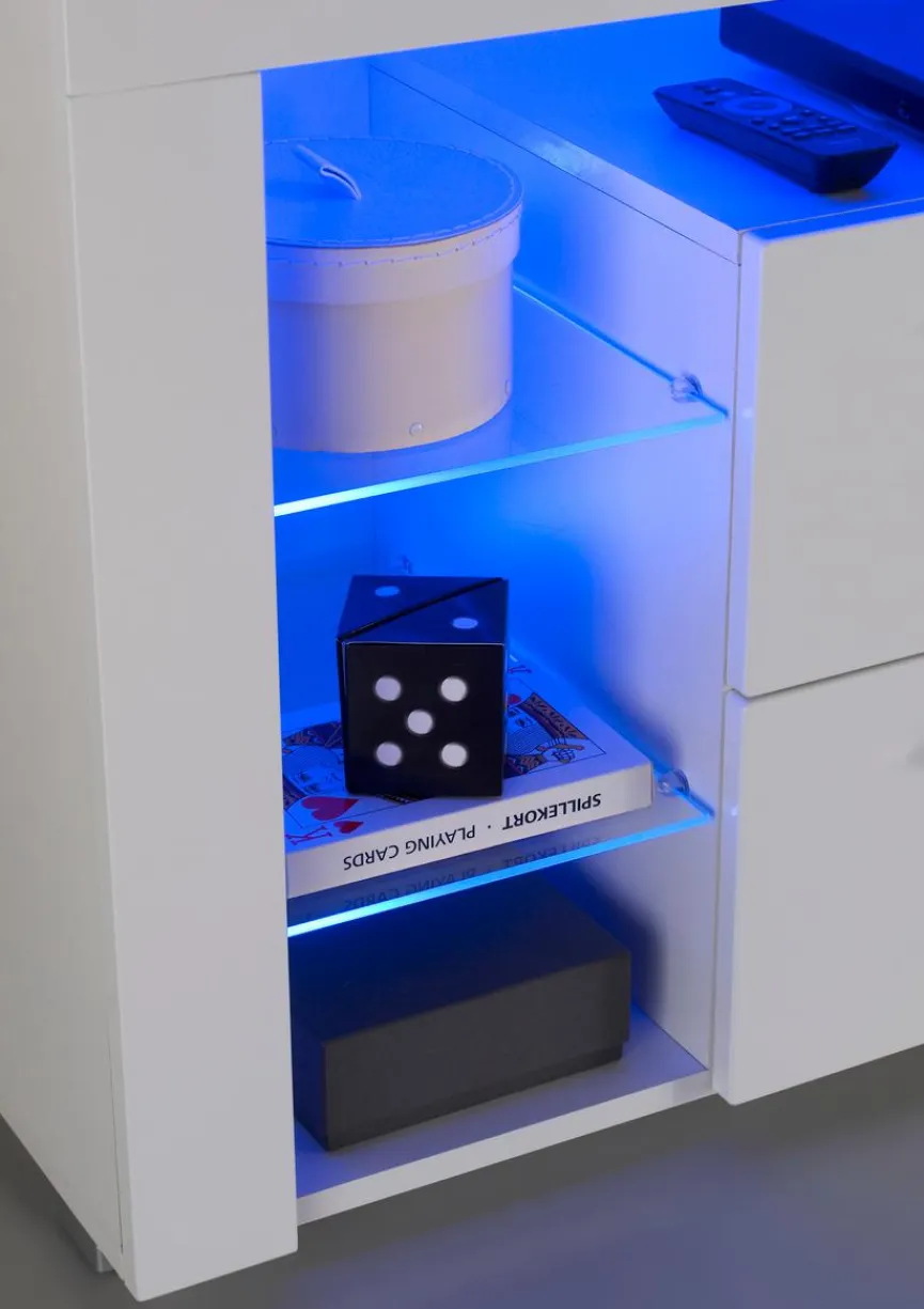 - Inkl. LED-Beleuchtung im Korpus und bei den 4 Glaseinlegeböden in blau