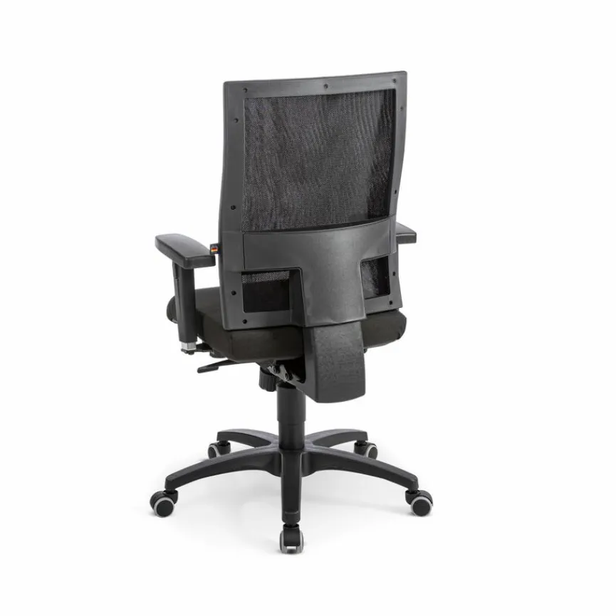 - Rückenlehne mit atmungsaktiver Netzbespannung, höhenverstellbar über „up-and-down“ System, Rückseite mit elastischen Gummibändern
