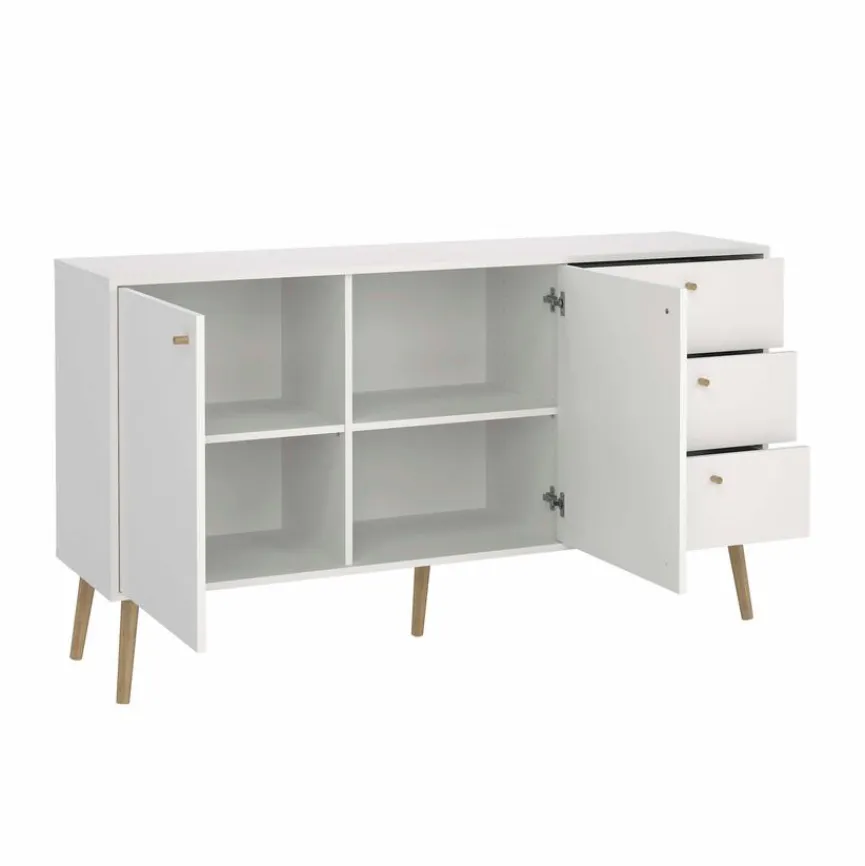 Mit zwei Türen und drei Schubladen bietet Ihnen das Sideboard Bodo aus dem Hause Tvilum reichlich Platz, um Gegenstände unterschiedlichster Art ordentlich sortiert unterzubringen. Doch diese Kommode ist nicht nur ungemein praktisch, sie ist auch eine optische Bereicherung für Wohneinrichtungen unterschiedlichster Art. Mit ihrem formschönen, cleanen Look harmoniert das Sideboard Bodo mit zahlreichen Einrichtungsstilen.