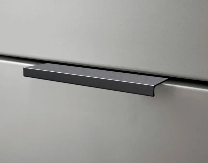 - Front aus Holzwerkstoff (MDF) mit Dekorfolie in Grau matt