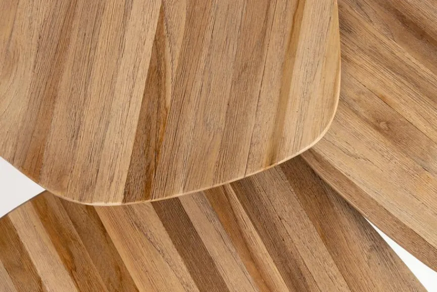- Tischplatten aus recyceltem Teakholz lackiert