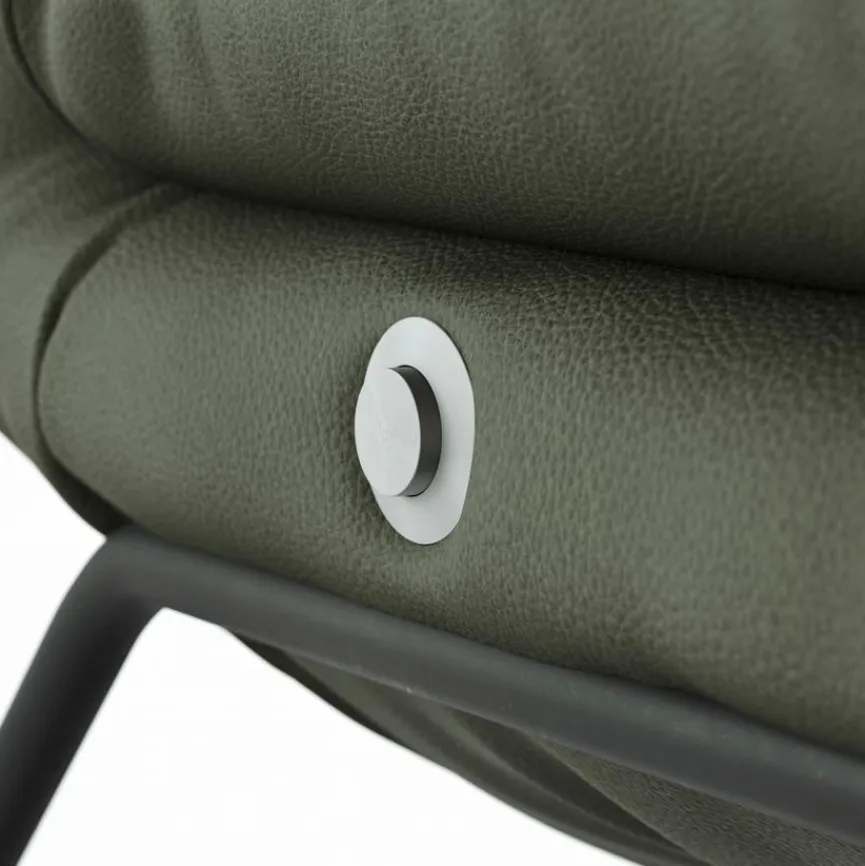- Bezug aus Leder (Retro) in Olive (L30), Gestell Metallkufe schwarz (MR1)