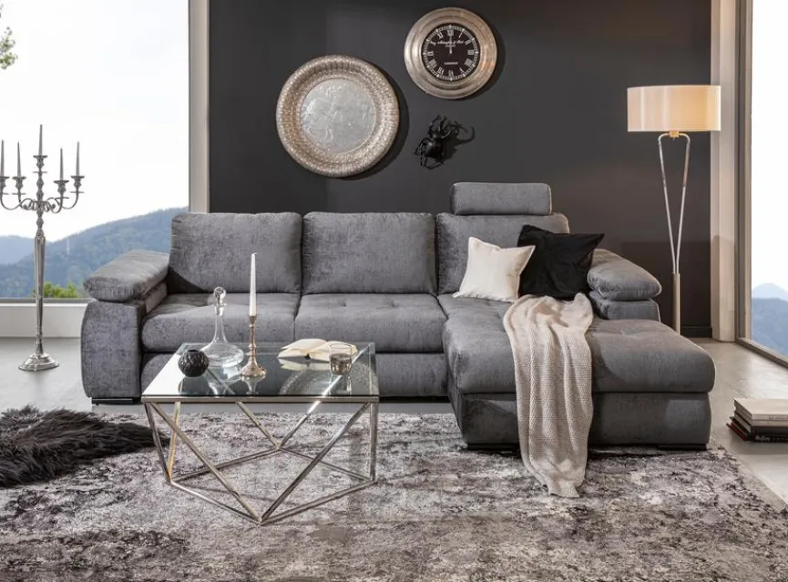 - Ecksofa besteht aus 3-Sitzer mit Armlehne links und Longchair mit Armlehne rechts