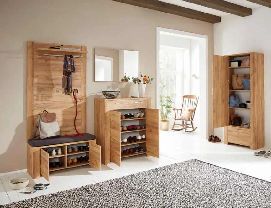 Das Garderobenpaneel Castera aus dem Hause Germania begeistert mit einem naturbelassenen Look und seiner praktischen Einteilung. So finden Mäntel und Jacken sowie Accessoires einen festen Platz an dem Dielenpaneel. Anders als bei Dielenschränken ist bei dem Garderobenpaneel Castera von Germania alles mit einem Griff zur Hand.