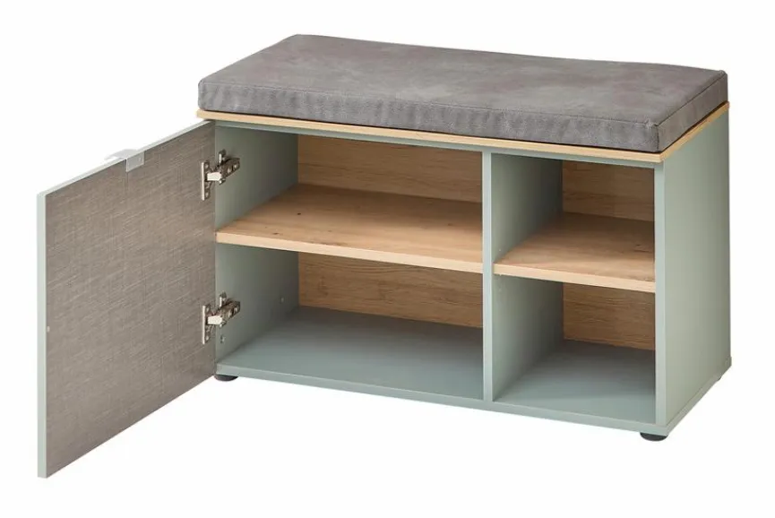 Für mehr Komfort und Ordnung im Flur und Eingangsbereichen ist die Garderobenbank Bari von Innostyle ein idealer Interior-Sidekick. Ein weich gepolstertes Sitzkissen sorgt bei dieser hübschen Umkleidebank für fantastische Bequemlichkeit, während in ihren Fächern Schuhe und andere Kleinigkeiten ruckzuck hineingestellt werden können. Die Hälfte des Stauraums verbirgt bei der Garderobenbank Bari eine Tür zum Aufklappen, die für ein harmonisches Design und wohltuende optische Ruhe sorgt.