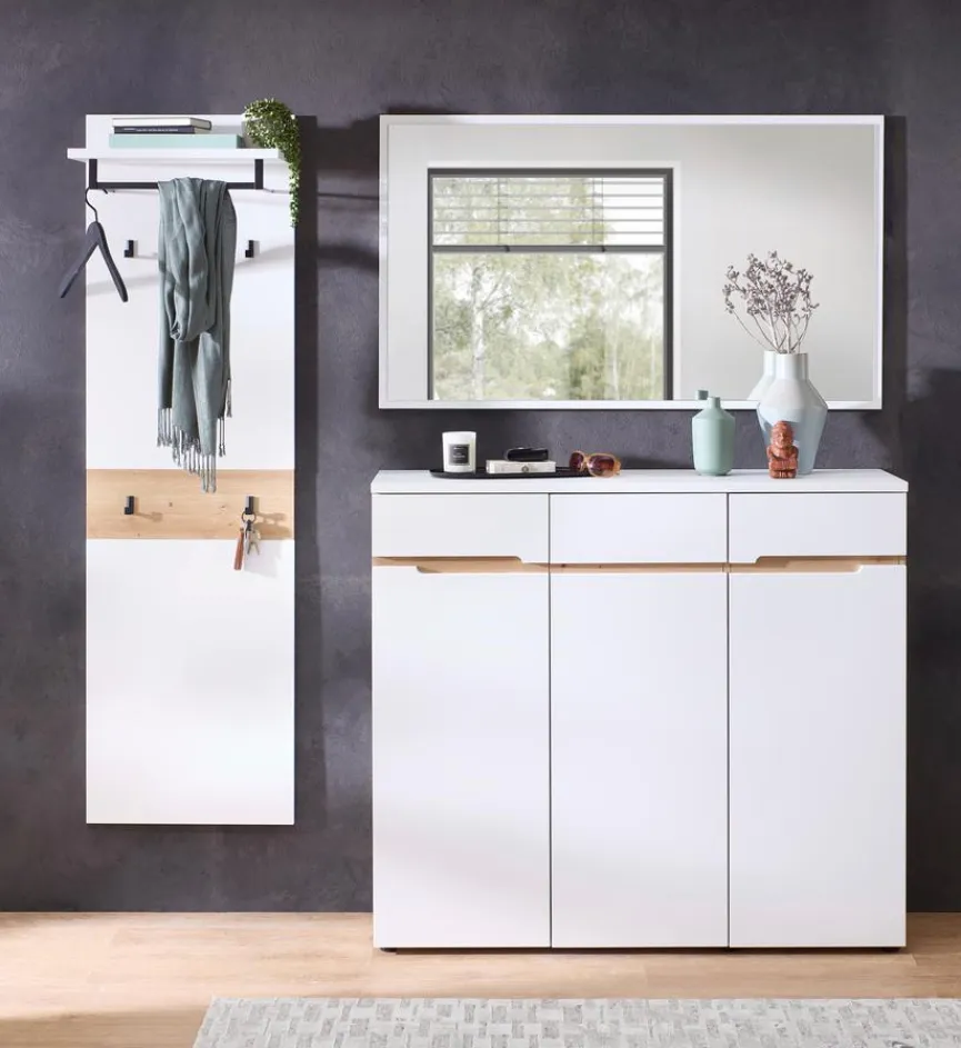 Mit dem Schuhschrank Memphis von Innostyle zieht Ordnung ein, denn in dem schlichten Kleinmöbel lassen sich Stiefel, Turnschuhe und Co. übersichtlich verstauen. Hinter drei Türen verbergen sich acht Einlegeböden, auf denen sich zahlreiche Paare abstellen lassen. Darüber hinaus bietet der Schuhschrank Memphis auf seiner Oberseite für Dekoratives oder Nützliches Platz.
