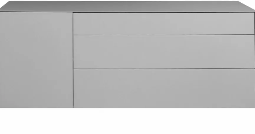 - Oberplatte, Klappe und Schubkasten aus Glas in kreidegrau glänzend