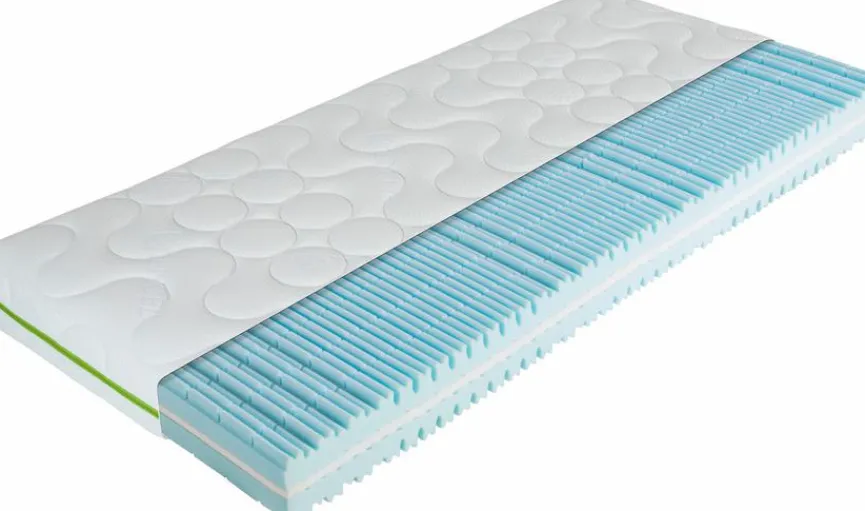 - Punktelastischer 7-Zonen-Kaltschaumkern mit Wellenkonturschnitt, Beckenkomfortzone, Schulterkomfortzone und Kopf- und Fußzone