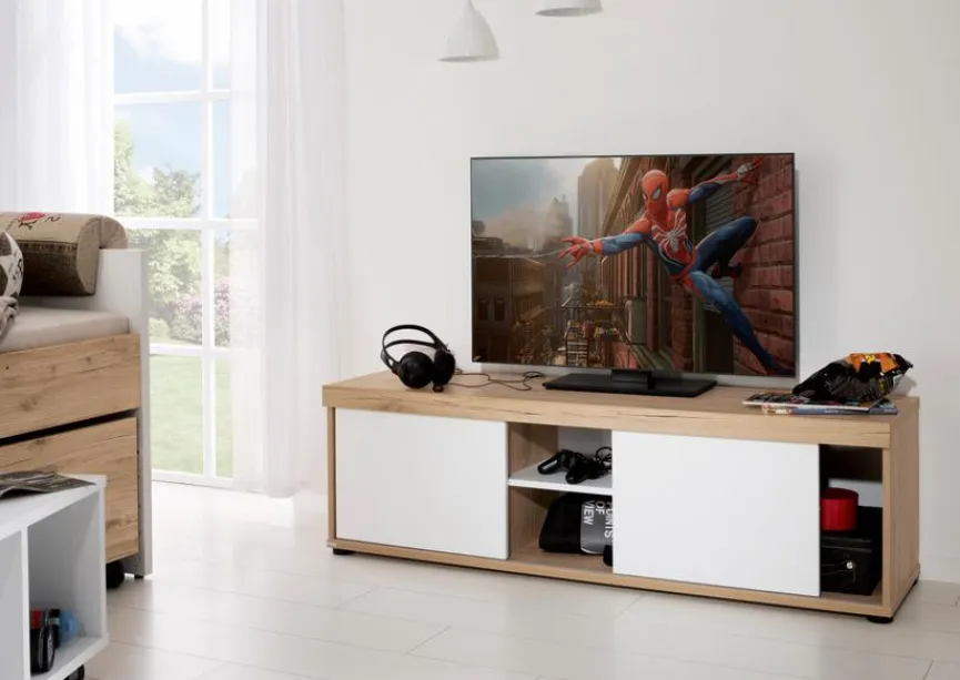Beim TV-Lowboard Fionn von Paidi treffen eine attraktive Optik und eine hohe Funktionalität zusammen. Mit dem gelungenen Zusammenspiel zwischen Naturholzflächen und unifarben lackierten Elementen sowie der puristischen Formensprache ist der TV-Unterschrank sehr schön anzusehen. Darüber hinaus bietet das TV-Lowboard Fionn von Paidi genügend Platz zum Verstauen von DVD-Player, Fernbedienungen und anderen Dingen.