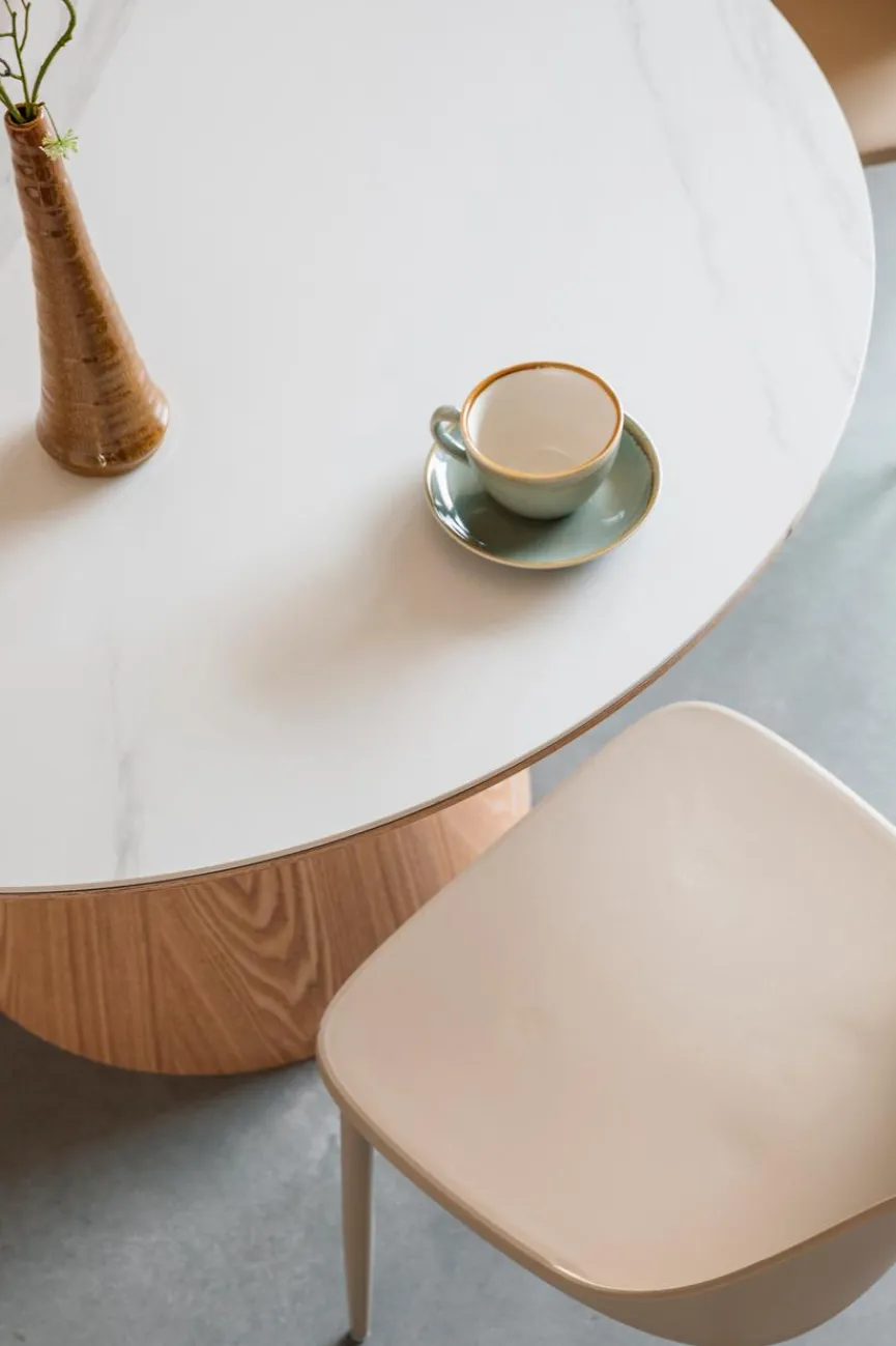 Ein zylinderförmiges Gestell in attraktiver Eiche-Optik verleiht dem Esstisch Almira der Marke Zuiver echte Blickfängerqualität. Auch dank der ansprechend gestalteten, formschönen Platte ist der Esszimmertisch eine echte Zierde für Ihr Zuhause. Natürlich kann der erstklassig gefertigte Esstisch Almira zudem in Sachen Qualität auf ganzer Linie überzeugen.