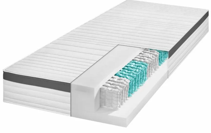 - Punktelastischer 7-Zonen Taschenfederkern mit ca. 500 Federn/m2, beidseitig Komfortschaumauflage, RG 30