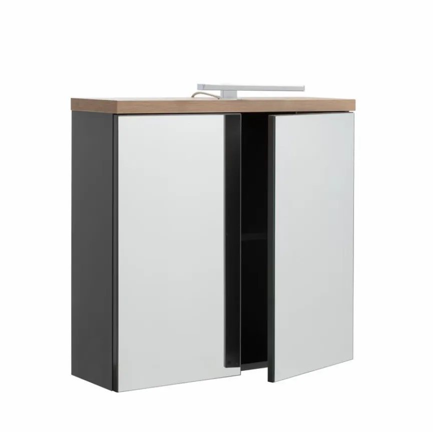 Mit dem Spiegelschrank Mundi der Marke Composad schaffen Sie Stauraum und Ästhetik zugleich. Eine praktische Lampe sorgt für das perfekte Licht am Spiegel, während Ihre Pflegeutensilien im Inneren des Schrankes ordentlich Platz finden. Der Spiegelschrank Mundi überzeugt mit seiner hochwertigen Ausführung und dem modernen Design.