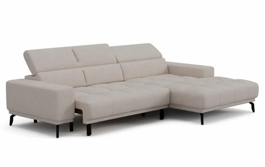 - Ecksofa besteht aus 3-Sitzer mit Armlehne links und Longchair mit Armlehne rechts