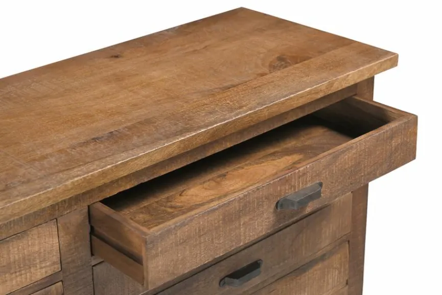 Das ursprünglich aus Indien stammende Mangoholz wurde vor einigen Jahren für die Möbelherstellung entdeckt. Es besticht mit einer hellen, natürlich braunen Farbe. Mit der frischen, klaren Optik passt es perfekt zum angesagten Massivholztrend.