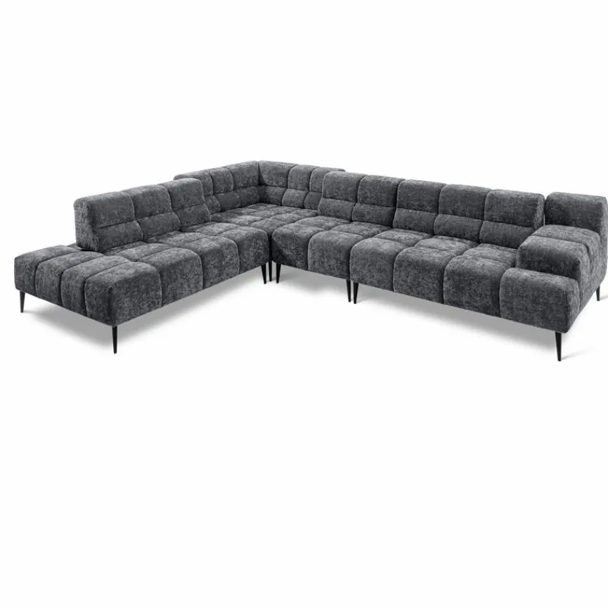 - Ecksofa besteht aus Element mit offenem Abschluss links, Ecke, Zwischenelement ohne Armlehnen, Element mit Armlehne rechts