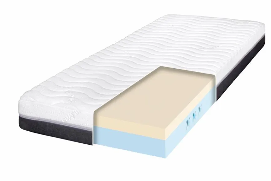 - 7 cm einzigartiger offenzelliger, druckentlastender und atmungsaktiver Eucavisco® Kern mit RG 60 darunter 18 cm HR-Kaltschaum als stützendes Trägermaterial mit RG 45