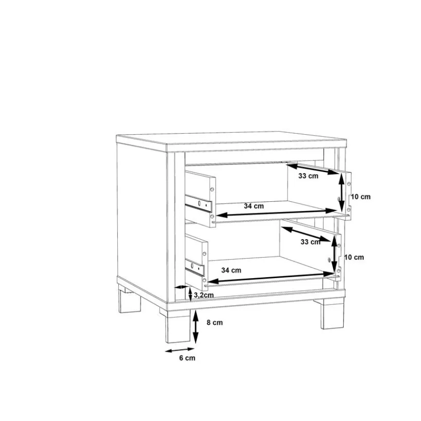 - Mit 2 Schubkästen auf Metalllaufleisten und Griffen aus Metall in schwarz