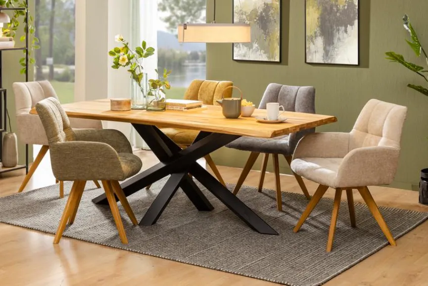 An dem ästhetischen, robusten Esstisch Hawai 200×100 cm kann man essen, trinken, spielen und arbeiten. Das qualitätsvolle Kreuzgestell sorgt für einen sicheren Stand des aparten Esszimmertischs, dessen Materialkombination und minimalistisches Design einen markanten optischen Effekt erzielen. Setzen Sie mit dem langlebigen Esstisch Hawai 200×100 cm schicke Akzente!