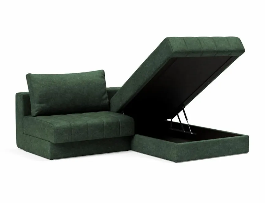 - Inkl. Schlaffunktion durch umklappbare Rückenlehne im 1-Sitzer und Bettkasten im Longchair