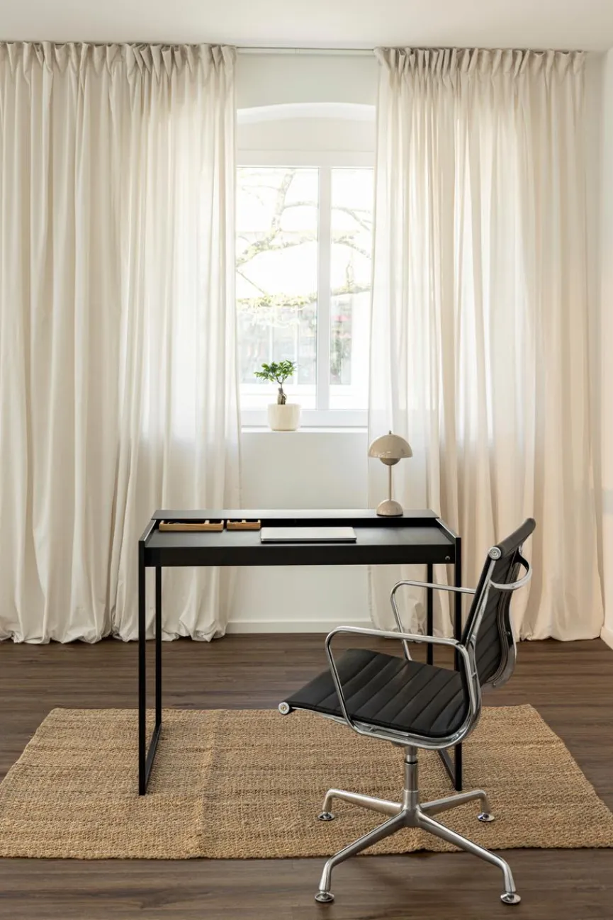 Der Schreibtisch Donna von Metallbude sammelt als schnörkelloses, funktionales Möbelstück Punkte und setzt markante Akzente. Eine L-förmige abnehmbare Ablage erleichtert die Aufbewahrung und Organisation von Utensilien. Dank der integrierten Kabeldurchführung lassen sich auch Lampen und Laptops problemlos anschließen, sodass der Schreibtisch Donna das Homeoffice auf stilvolle Weise bereichert.
