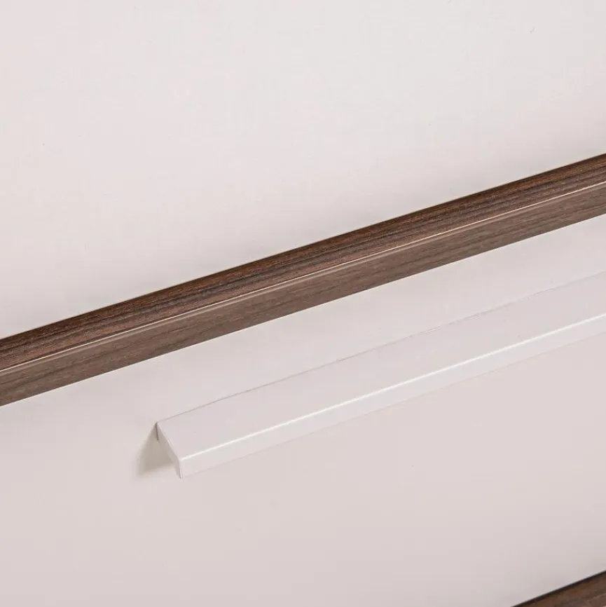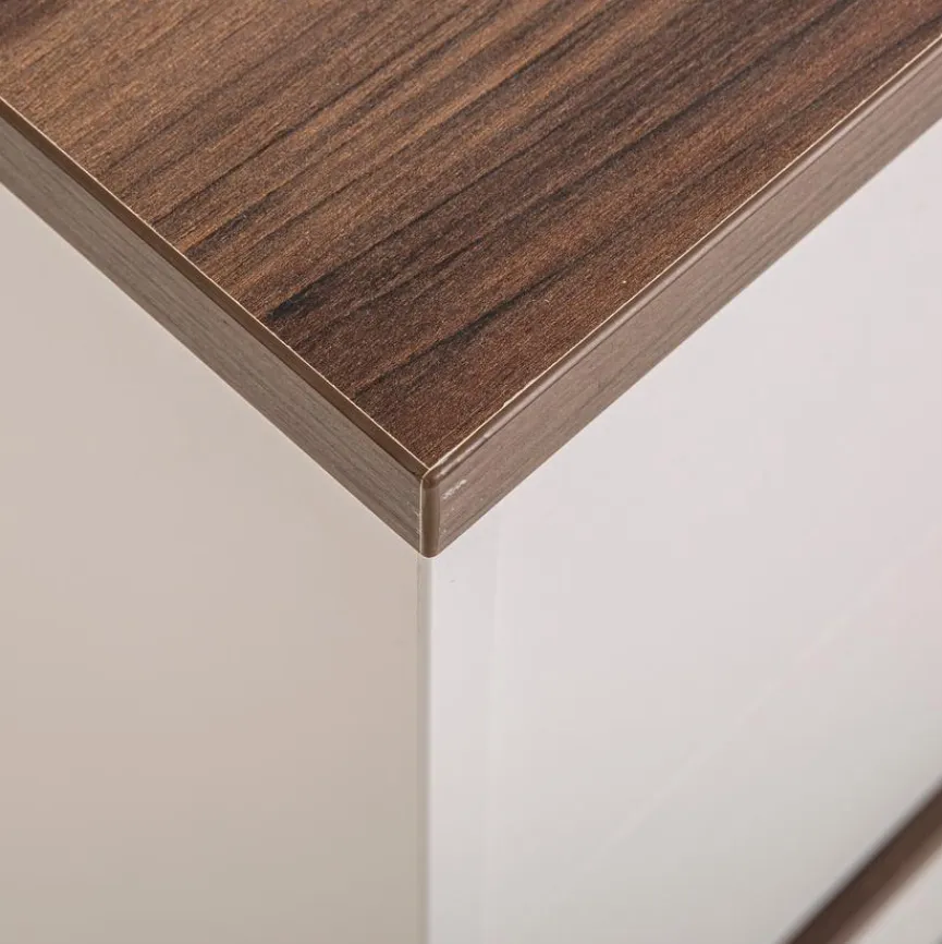 - Aus Holzwerkstoff (Spanplatte) mit kratzfester Melaminharzfolie in Off-white, Absetzungen aus Holzwerkstoff (Spanplatte) mit kratzfester Melaminharzfolie in Dark Walnut