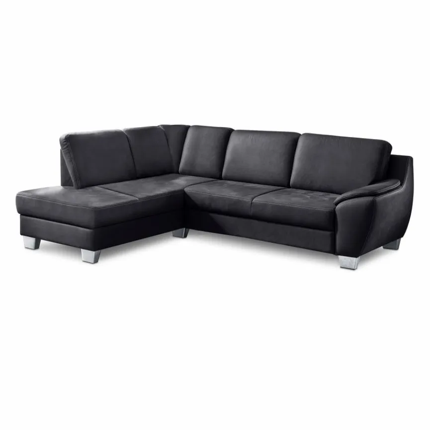 - Bezug aus Mikrofaser (898) in schwarz (06) mit silberfarbener Kontrastnaht (F18), Füße aus Metall (F914M)