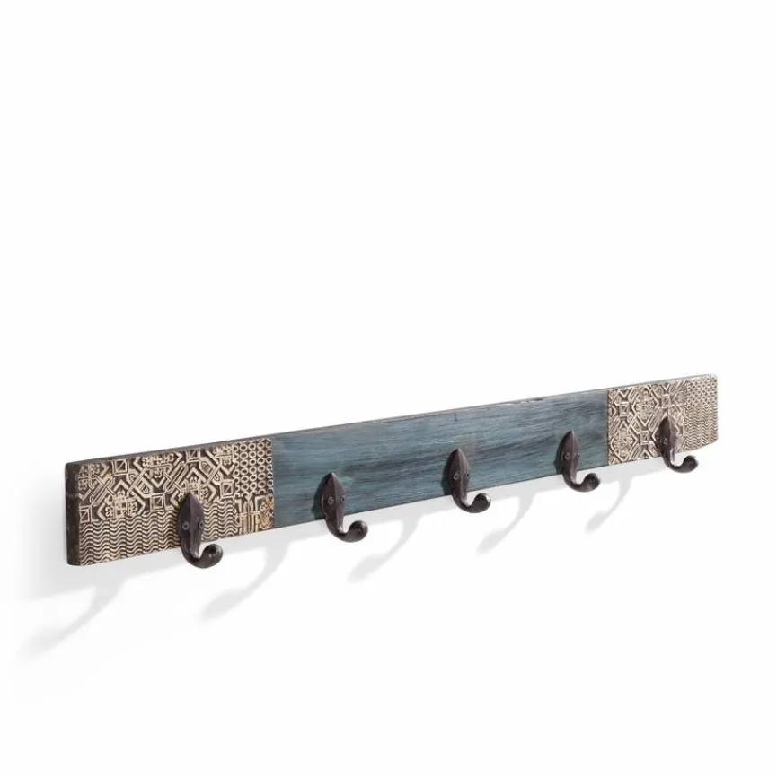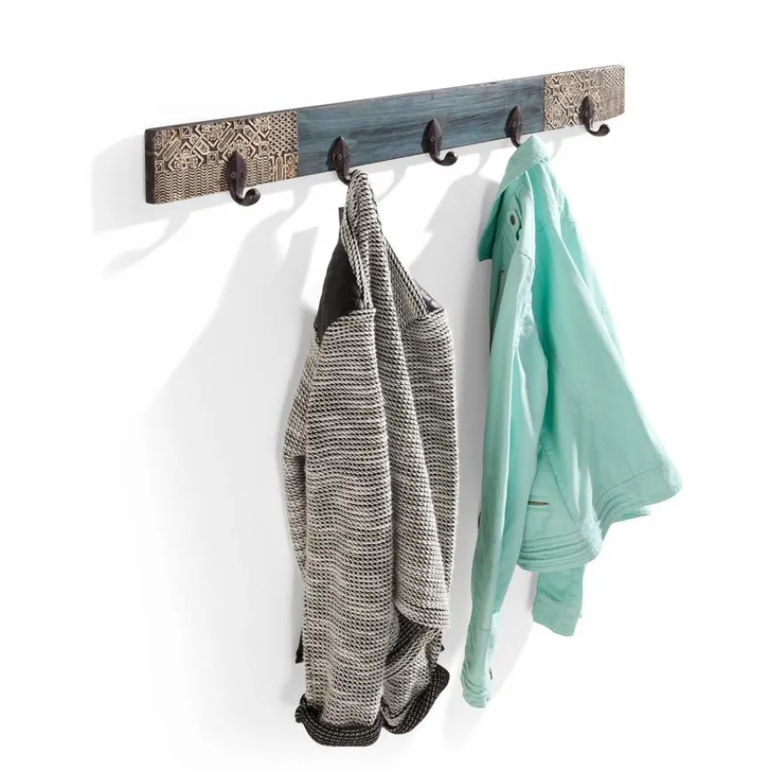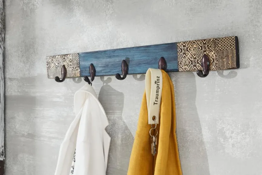 Ein Muss für Liebhaber ausgefallenen Designs: Das mehrfarbig lackierte Mangoholz und coole Metallapplikationen verleihen dem Garderobenhaken Goa ihren unverwechselbaren Charakter. Dank des Designs im angesagten Used-Look zieht das außergewöhnliche Wohnaccessoire alle Blicke auf sich. Neben der hübschen Optik bietet der Garderobenhaken aber auch Platz für Schals, Handtasche, Jacken & Co.
