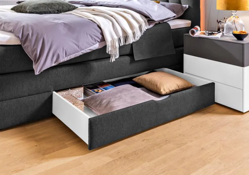- Boxunterbau „BX7“ mit Bonellfederkern, inkl. Bettschubkasten links und rechts