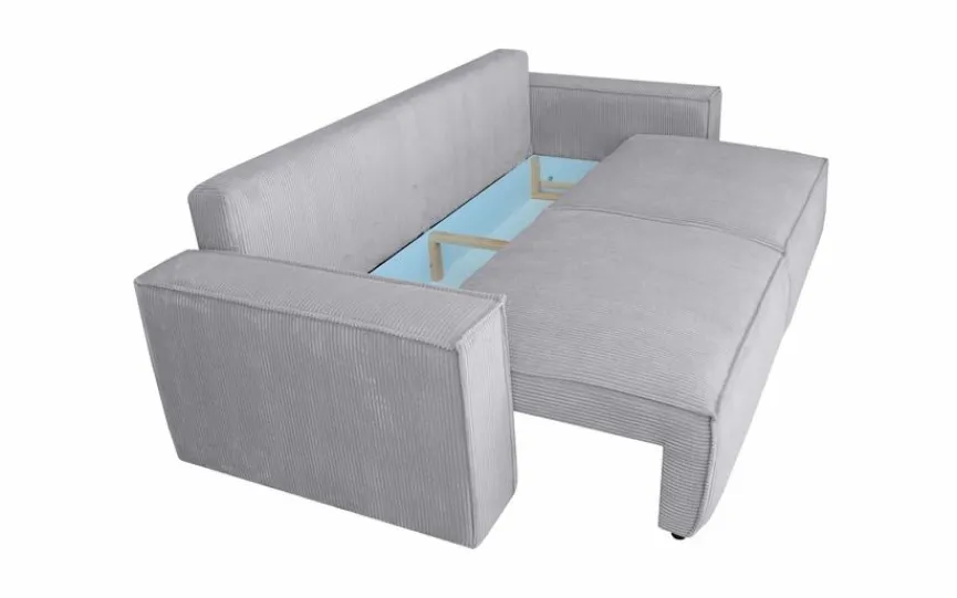 - Inkl. Schlaffunktion durch umklappbare Rückenlehne und Bettkasten
