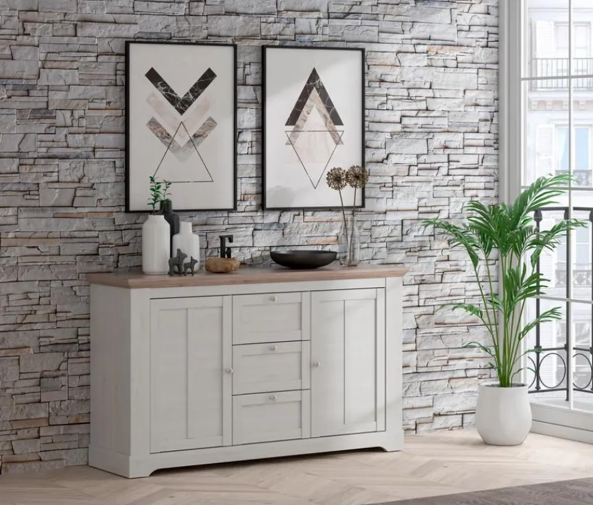 Das Sideboard Iloppa SZ der Marke FORTE ist dank des besonderen Designs sicherlich auch eine Bereicherung für Ihre Wohnung. Ein Pluspunkt ist, dass Sie die Kommode mit den unterschiedlichen Wohnstilen kombinieren können. In den drei Schubkästen sowie hinter den beiden Türen findet sich ein Plätzchen für all Ihre Lieblingssachen. Das Sideboard Iloppa SZ ist pflegeleicht und kann einfach gereinigt werden.