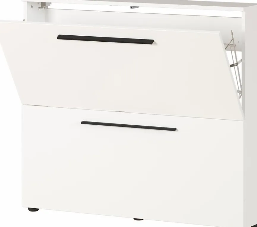 Der Schuhschrank Utah aus dem Hause Germania zeichnet sich durch sein modernes und stilvolles Design aus. Er hat zudem zwei Klappen sowie zwei Schuhkörbe. So stellt der Schuhschrank Utah des Herstellers Germania für bis zu acht Paar Schuhe genügend praktischen Stauraum zur Verfügung.