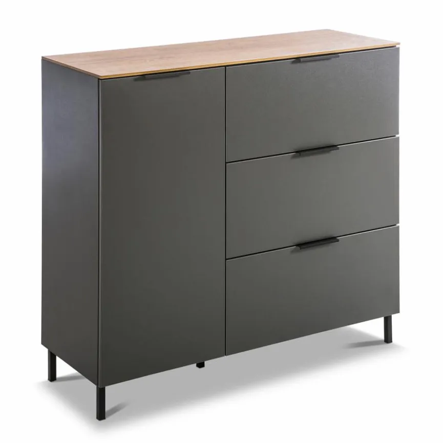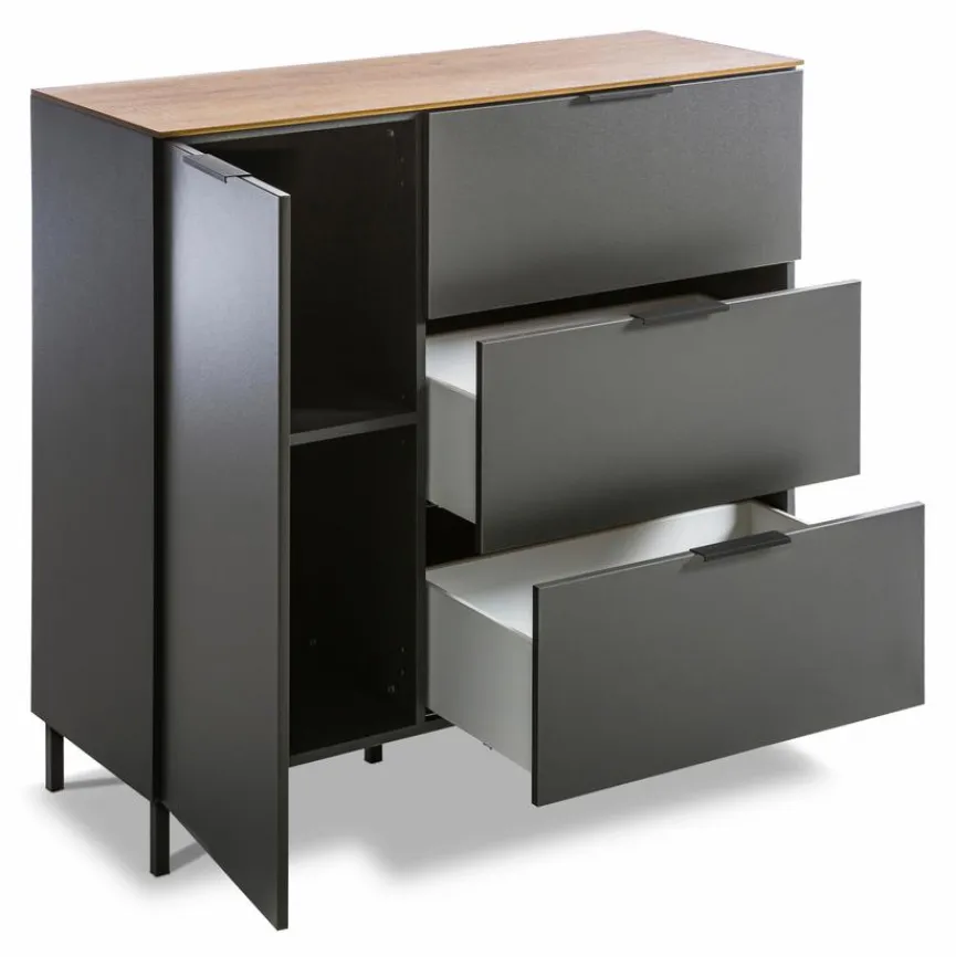 Die praktische Kommode California der Marke Germania besteht aus einem hohem Fach mit Tür sowie aus drei Schubkästen. Im Wohnzimmer, in der Diele oder im Büro bietet Ihnen dieses Aufbewahrungsmöbel viel Platz für diverse Utensilien. Zudem zeichnet sich die Kommode California von Germania durch ein geradliniges Design und eine moderne zweifarbige Optik aus.