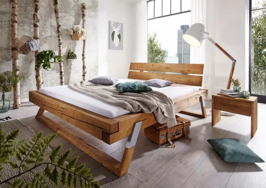 Das Massivholzbett BE-0276 180×200 cm weist eine rustikale Optik auf, die sich perfekt in einen minimalistischen Einrichtungsstil einfügt. Farblich setzt der Hersteller bei diesem Bett auf eine natürliche, einheitliche Gestaltung. Darüber hinaus zeichnet sich das Massivholzbett BE-0276 180×200 cm durch seine hochwertige Verarbeitung aus.
