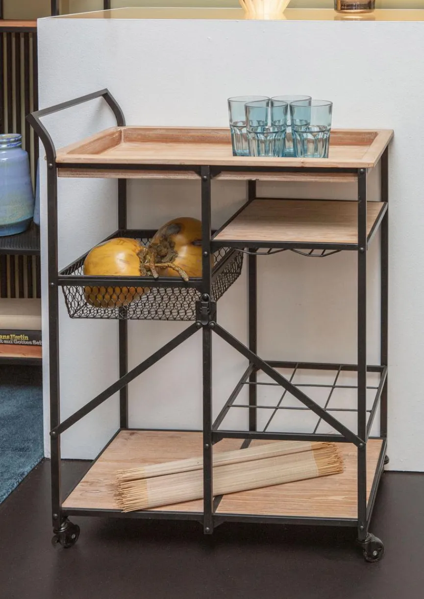 Mit dem praktischen Servierwagen Potpourri des Herstellers Gutmann Factory haben Sie alles im Griff, was Sie Ihren Gästen servieren möchten. Teller, Gläser und alles Weitere lassen sich sicher aus der Küche an den Tisch bringen. Zudem überzeugt der ansprechende Materialmix aus Metall und Holz. Selbst wenn er nicht im Einsatz und irgendwo geparkt ist, stellt der Servierwagen Potpourri von Gutmann Factory einen attraktiven Blickfang dar.