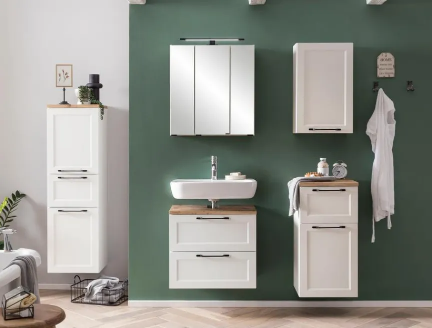 - Front aus Holzwerkstoff (MDF) mit hochwertiger Dekorfolie in Weiß matt