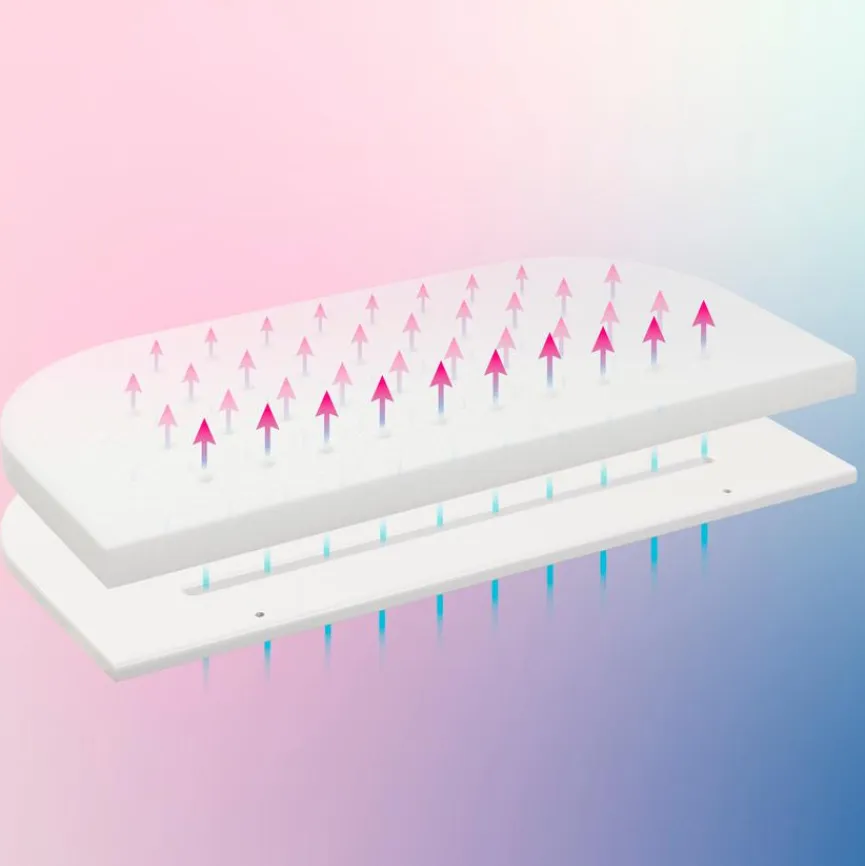 - Offenporiger, atmungsaktiver Kaltschaumkern mit vertikalen, feuchtigkeitsregulierenden Klimakanälen