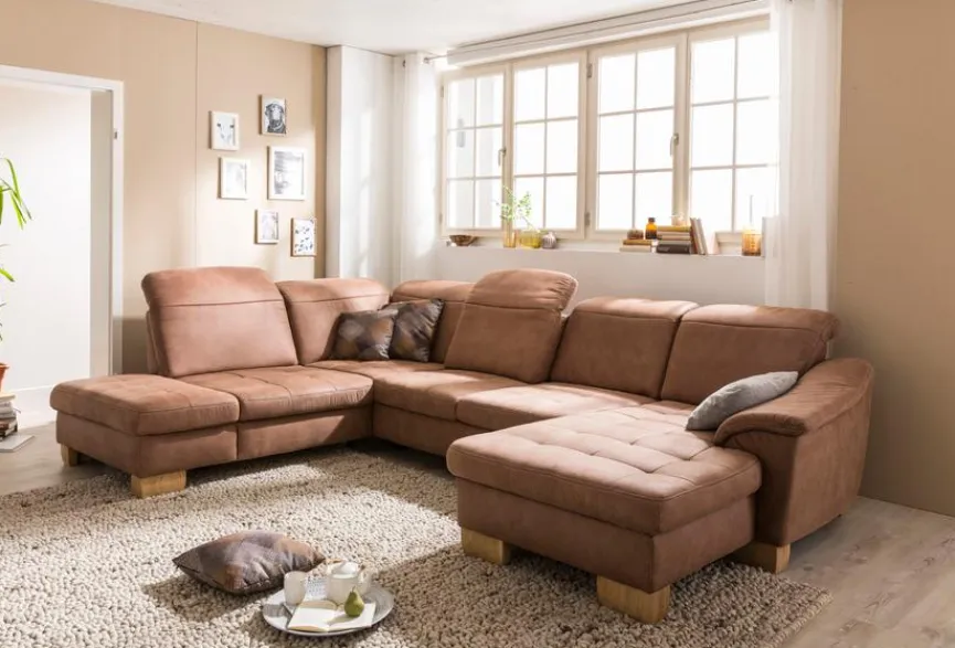 - Wohnlandschaft besteht aus Ottomane links (1,5KOLKV), 2,5-Sitzer ohne Armlehne (2,5ELKV), Longchair mit Armlehne rechts (CanRKV)