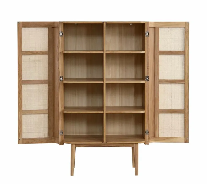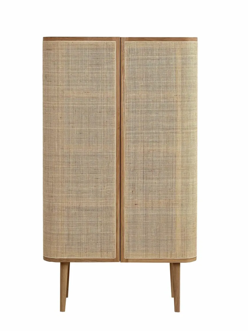 Das Highboard Kokoon von DAHEIM bringt jede Menge originellen Charakter und Gemütlichkeit mit sich. An den Seitenbereichen stark abgerundete Türen im Flechtdesign verleihen dieser Kommode ihren herrlich exotischen Touch. Kombinieren Sie das Highboard Kokoon zum Beispiel mit Möbeln im mediterranen Chic oder mit Interieur im Kolonialstil!