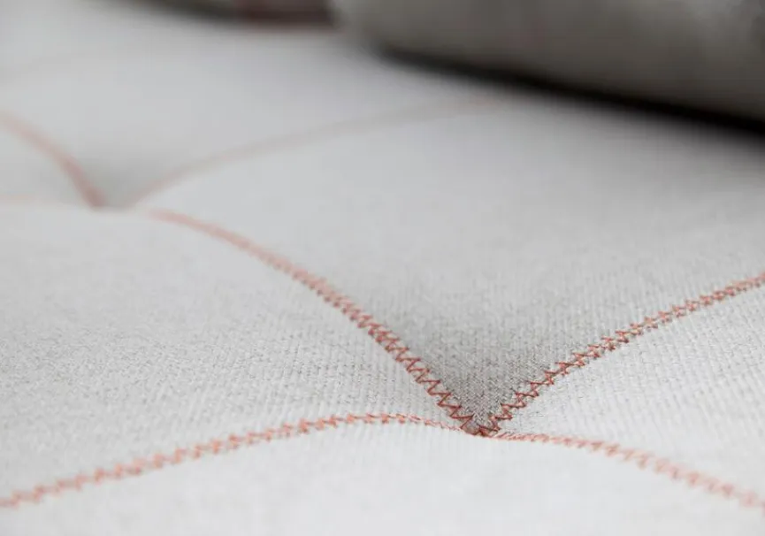 - Polsterung aus Polyätherschaum und Fiberfill (Pocket Spring), Unterfederung durch Taschenfederkern (6 – 12 cm)