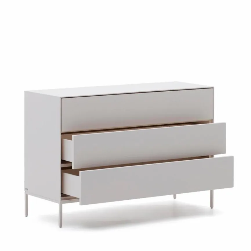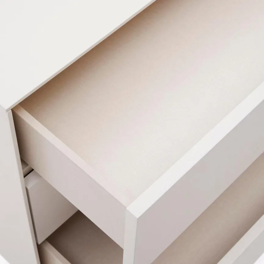 Die hochwertige Kommode Vedrana von Kave Home passt sich dank ihres zurückhaltenden Designs mühelos den Gegebenheiten an. Egal, ob sie im Wohn- oder Schlafzimmer beziehungsweise in der Diele aufgestellt wird, sie bringt stets eine stilvolle Note mit sich. Gleichzeitig begeistert die Kommode Vedrana durch ihre großzügigen Schubladen, die im Handumdrehen für Ordnung sorgen.