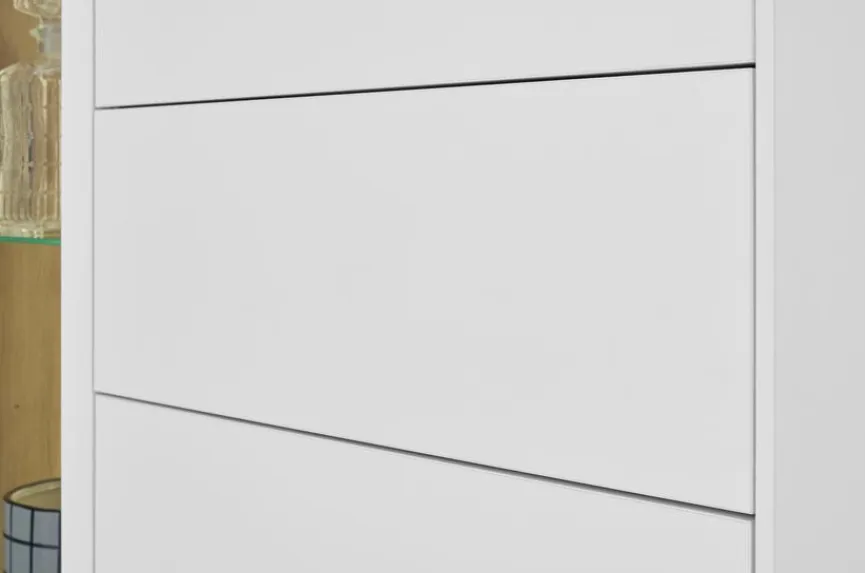 - Mit 1 Tür, 1 Glastür, 1 Klappe und 1 Schubkasten mit Selbsteinzug