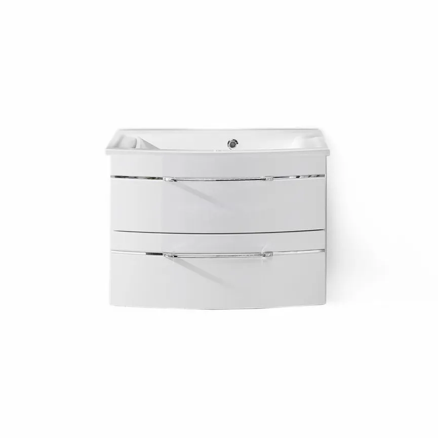 - Inkl. Waschtischunterschrank mit 2 Auszügen und Griffe in Chrom Glanz
