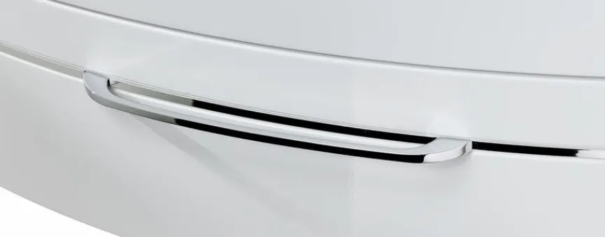 - Front aus Holzwerkstoff (MDF) mit hochwertiger Dekorfolie in Weiß Hochglanz mit Chromleiste