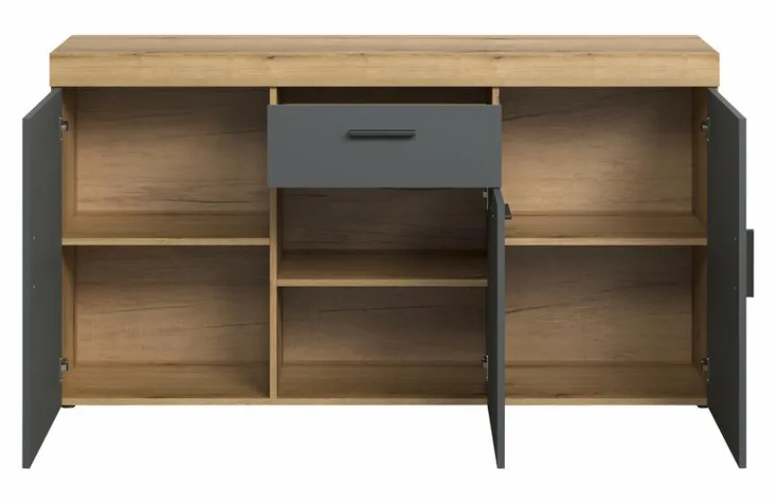 - Mit 3 Türen, 3 Einlegeböden und 1 Schubkasten